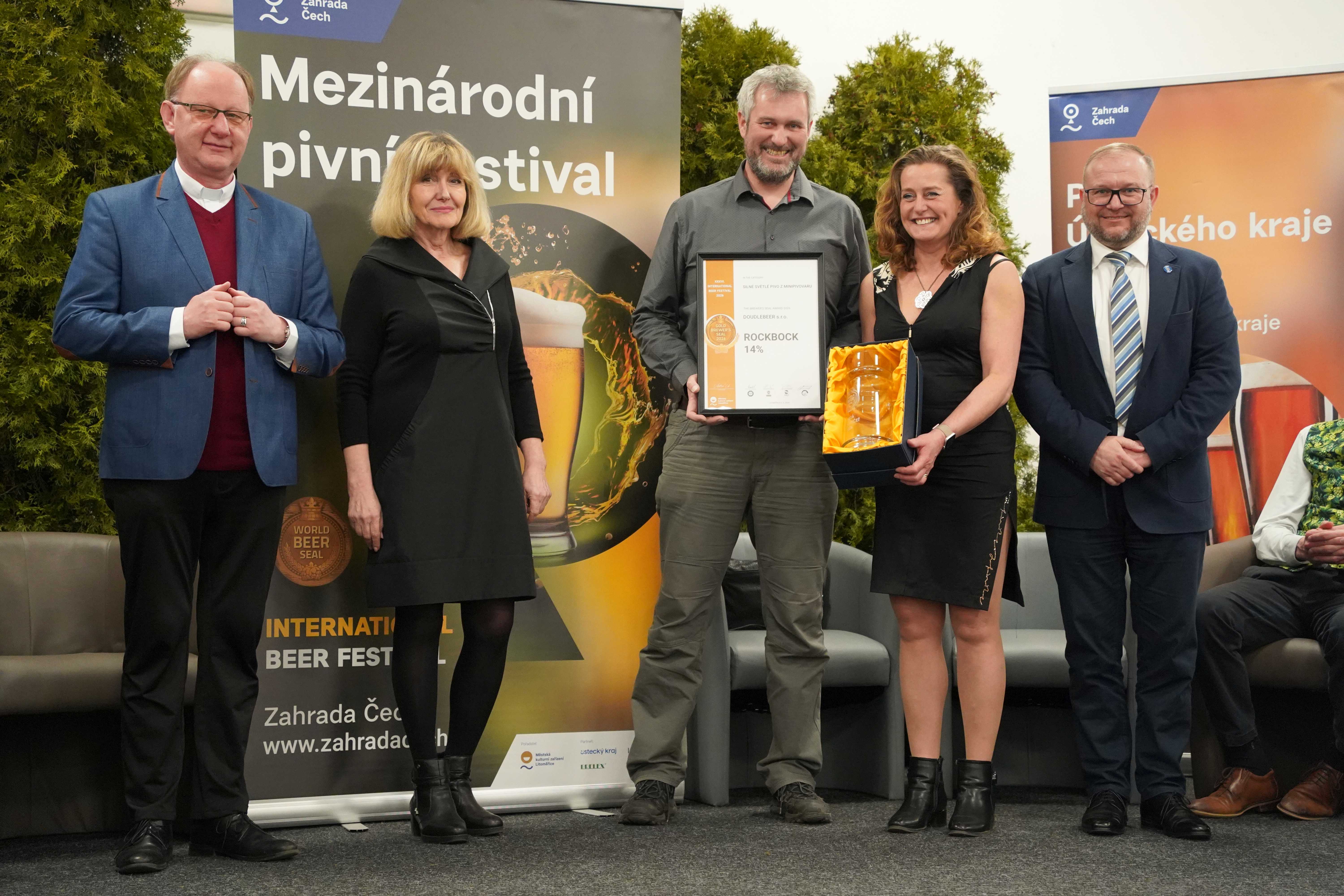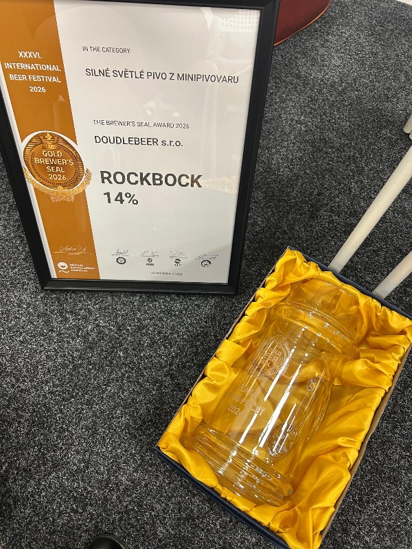 Litoměřice 2026. Zlatá pivní pečeť pro náš RockBock 14% v kategorii silné světlé pivo z minipivovaru.