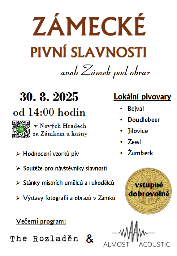 Zámecké pivní slavnosti Nové Hrady 30.8.2025